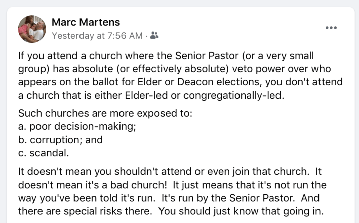 Some use the words “congregational rule” in a way that seems to go against what most would take those words to mean, or in a way that does not seem to be based on a fair and general usage of those words. The words represent the user’s own definition as to what “congregational” means.