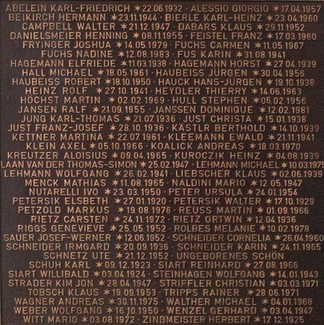 Our memorial stone stands in an idyllic grove, just outside the gates of the Air Base. The planes taking off fly directly overhead. It may sound weird, but this is the place where I can remember my family best. My life changed so tragically here in Ramstein forever. There I saw my wife Carmen and our beloved daughter Nadine for the last time.