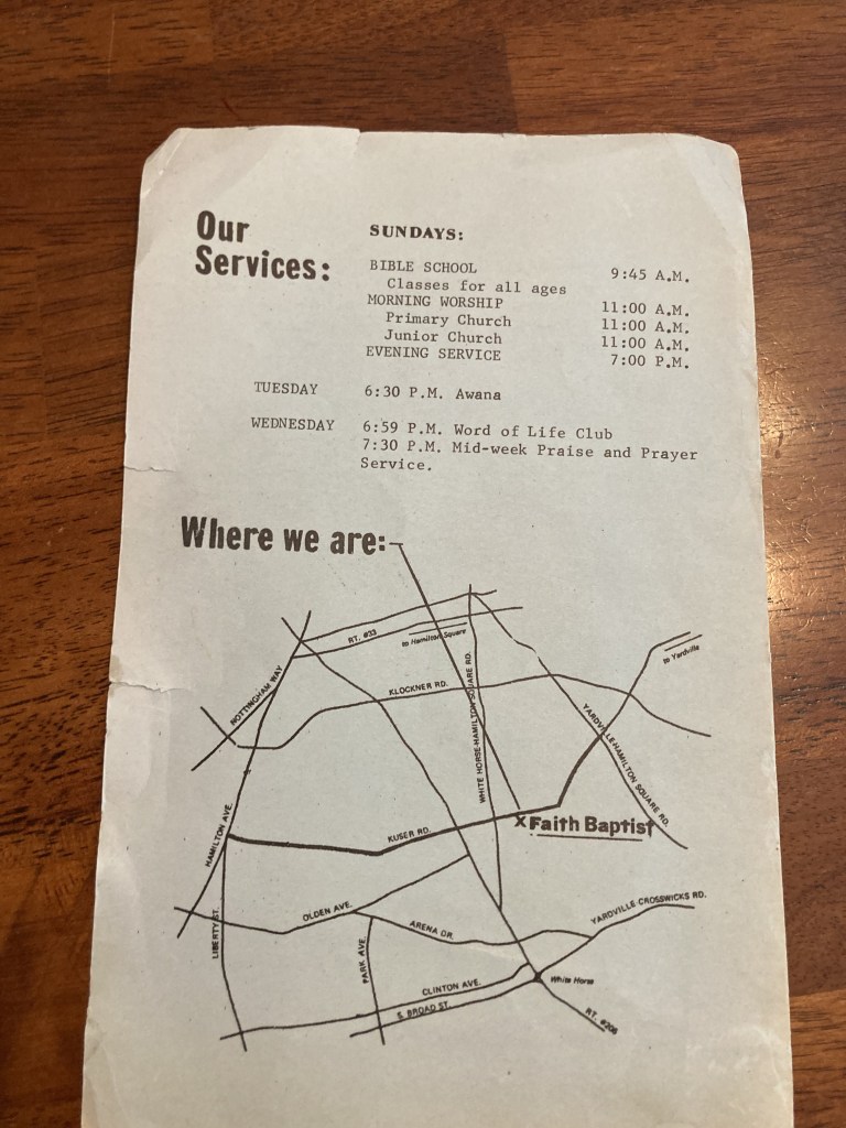 There were times when I received phone calls (An extension church phone line was installed in the parsonage.) — “I need to know how to be saved.” Or . . . .”I broke down on 195 and looked in the Yellow Pages for the biggest church ad and am calling to see if you could help.” There were times when strangers who lived in the surrounding neighborhood were perched out on the back steps early Sunday morning — “I told my mom I wanted to go to church today and asked my mom where I should go. She told me, how about that church on Kuser Road.” Or . . . “I think I am going to die because I just swallowed rat poison.”